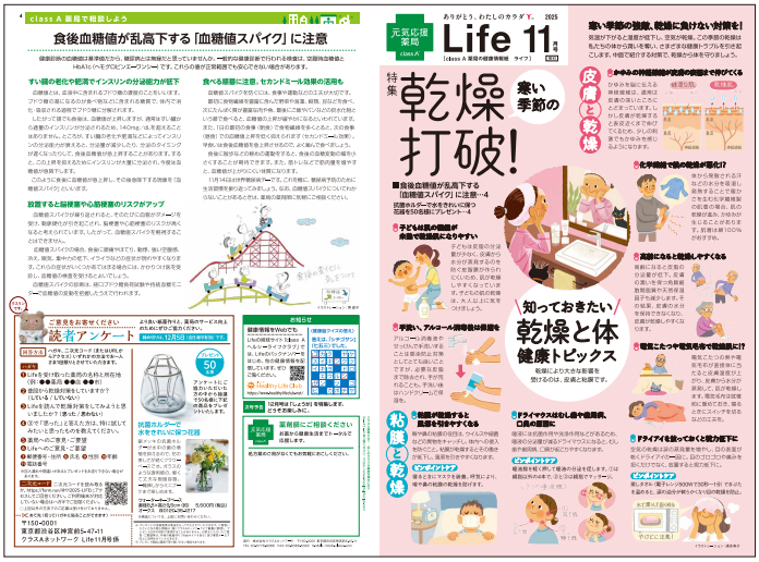 2025年11月,薬局で患者さまにお配りしている今月の健康情報誌LIFEの特集は