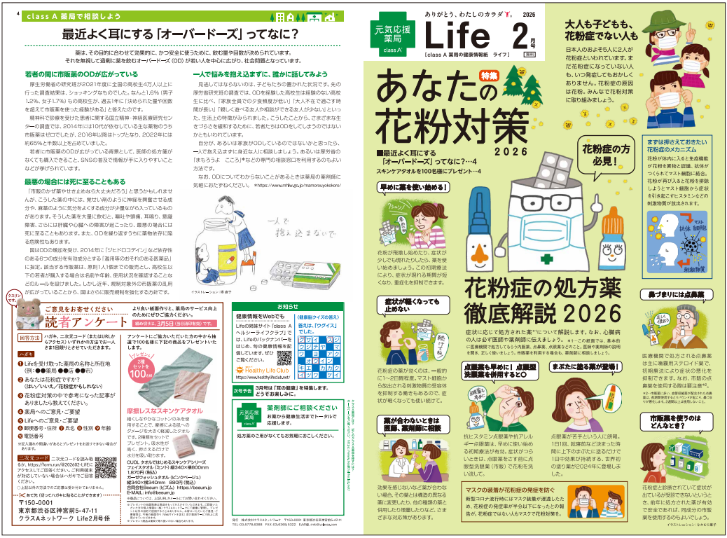 あなたの花粉対策 健康情報誌Life 2026年2月号 お配りしています